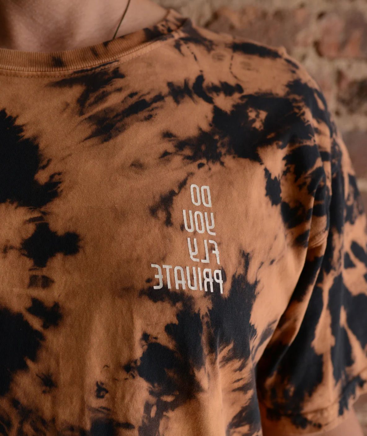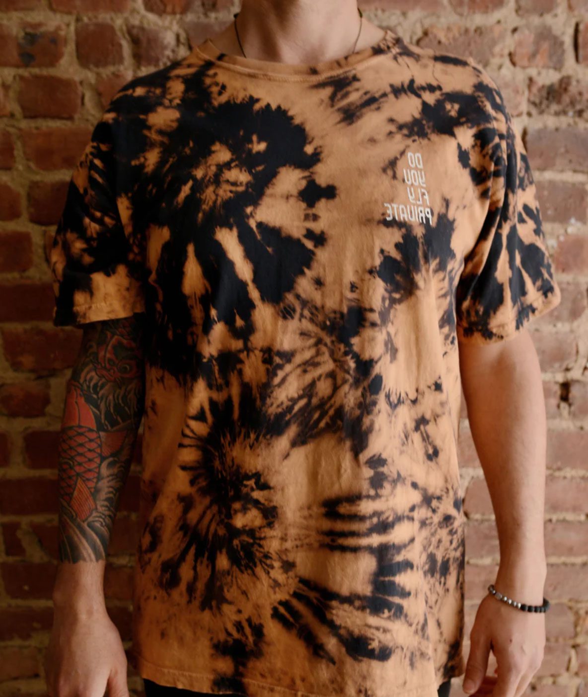 We gave our classic Do You Fly Private tee a tie-dye treatment to create unique visuals exclusively for you. The shirts are vintage feel, pre-shrunk and a little oversize. Available in men’s and women’s (v-neck).
